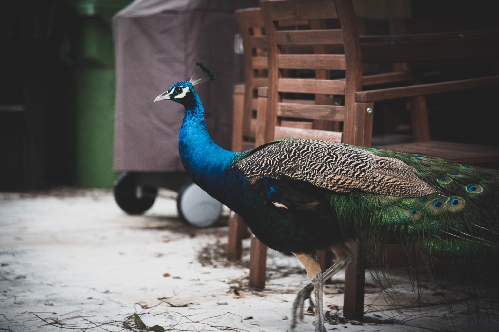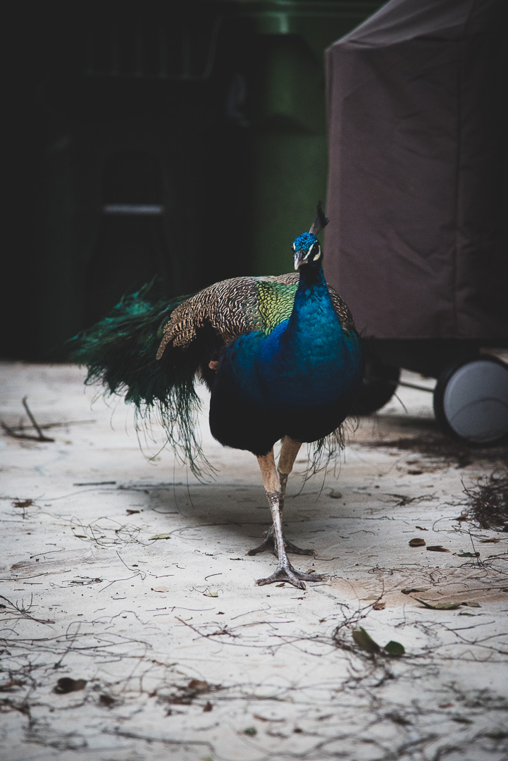 Back in January, we came home one day to a peacock in our backyard. And he didn’t seem to want to go away. Dory found some feed for him, so he stuck around a little longer.